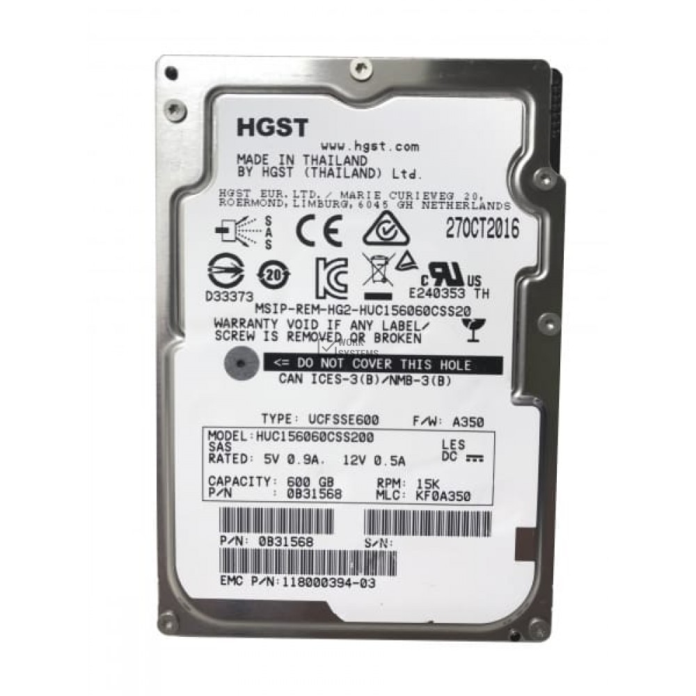 Жесткий диск EMC 118000394-03 600Gb 15000 SAS 2,5" HDD подлежит официальному ввозу на территорию РФ.