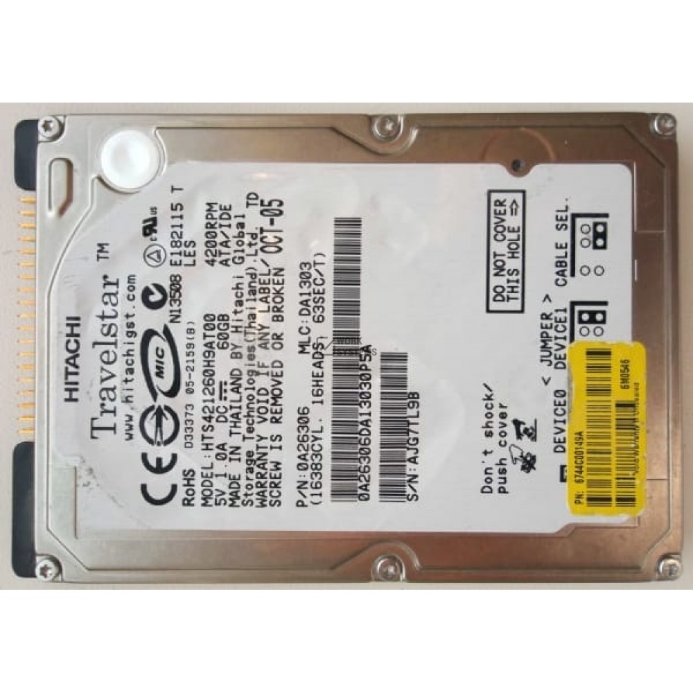 Жесткий диск Hitachi HTS421260H9AT00 60Gb 4200 IDE 2,5" HDD допускается к ввозу на территорию РФ официальным способом.