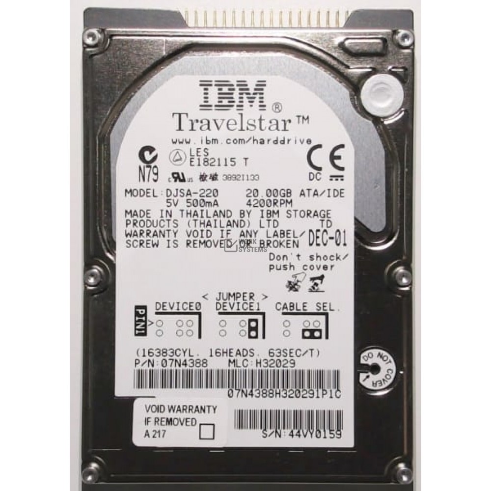Жесткий диск IBM DJSA-220 20Gb 4200 IDE 2,5" HDD соответствует описанию, представленному на официальном сайте производителя.