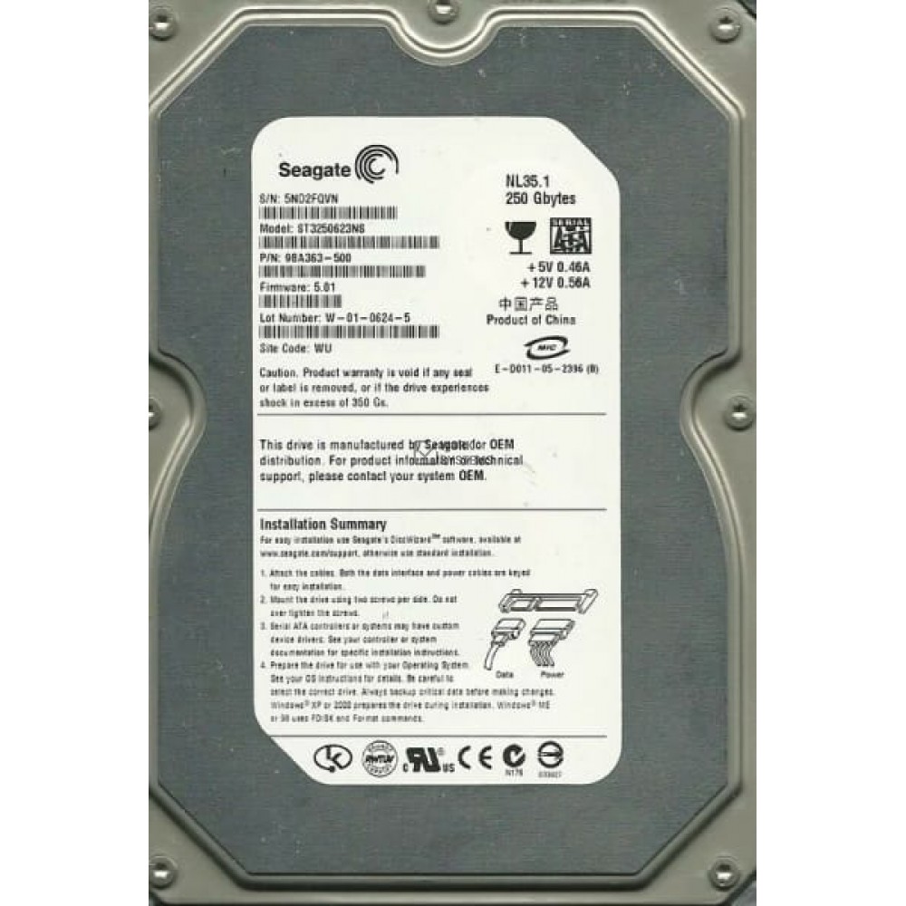 Жесткий диск Seagate 9BA363 250Gb SATA 3,5" HDD подлежит официальному ввозу на территорию РФ.